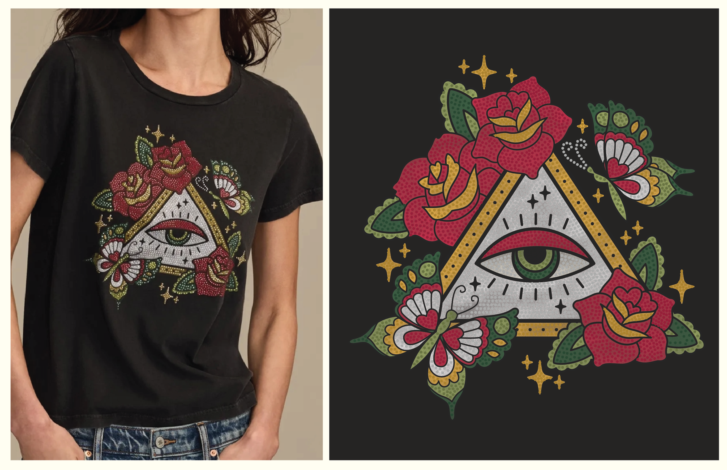 Soft Plastisol Print, Rhinestuds